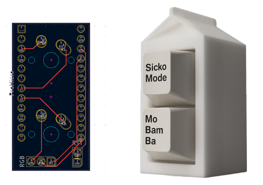 Amazingly, the 2-key keyboard design mentioned above is called "2% Milk". It obviously is an instance of someone having a genius idea and running with it. This is the original PCB design and the finished keyboard as depicted here.