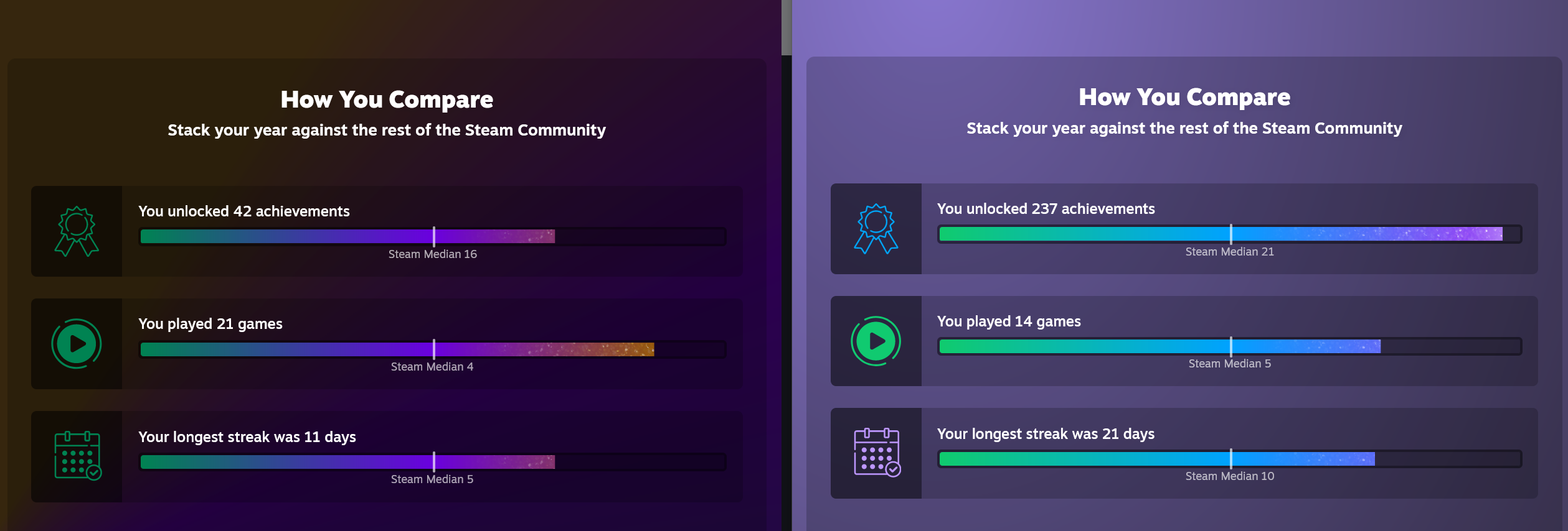 There's a similar trend with my Steam usage, even though it's not as clearly visible. These are some of my Steam stats: