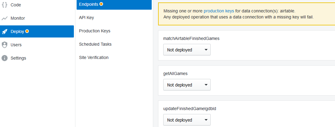 Seems Transposit won't just re-use the API key I've used for testing for a production deployment. This way, when I select I want the webhook to be deployed publically, I have to explicitly specify the API key to be used when the webhook is hit, which is nice.