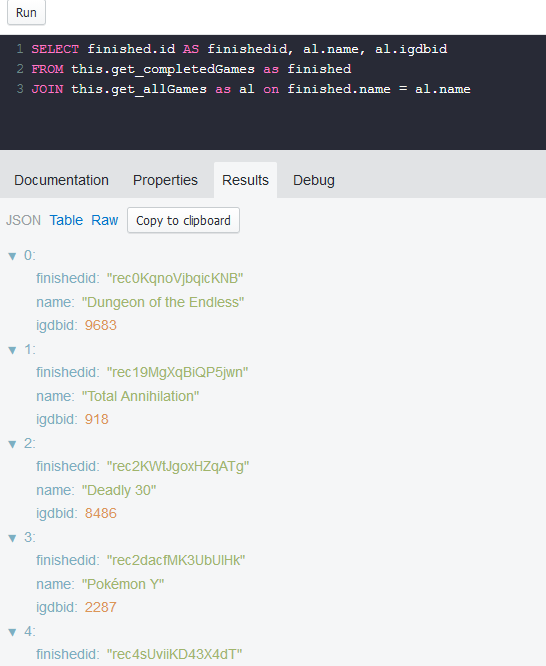 AND fields.`IGDB ID` = 0getCompletedGamesNoId operation.Now for the join.