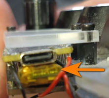 Then connect the accumulator, ideally via a tiny switch. Be careful here - don't short the battery leads, or touch them to any pins you're not supposed to, or you'll burn both the battery and the n!n's battery controller.