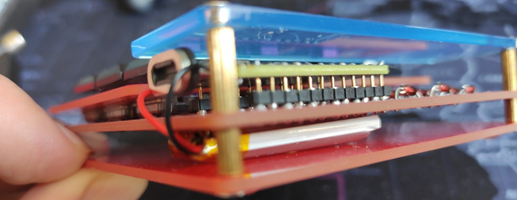 Otherwise, your best bet is to place the battery beneath the controller itself. The 300mAh 601235 I mentioned above is perfect for this because it fits between the n!n's pins. If you use tall enough sockets, you can put it right under the controller.