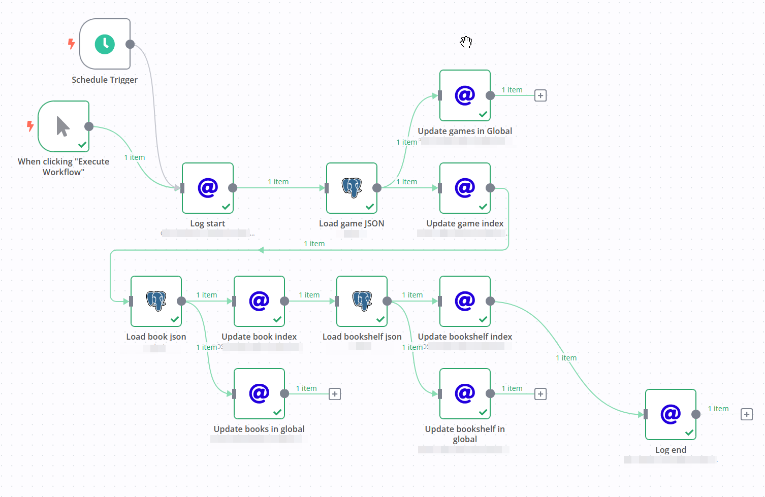 Then I wired up a simple n8n workflow that periodically downloads the data from the views, and sends them to Meili.