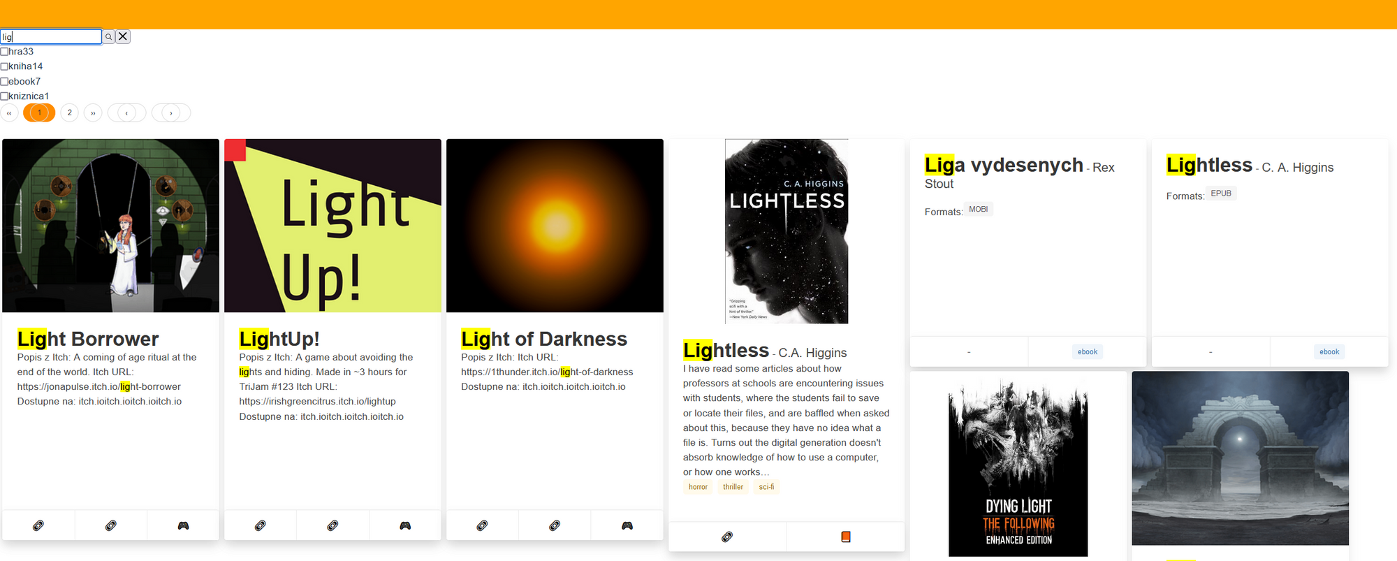 - Per-index search tabs: I could have specialized search tabs that only search a single index (say, books) instead of the "global" one. That would let me use more specific facets and sorts.